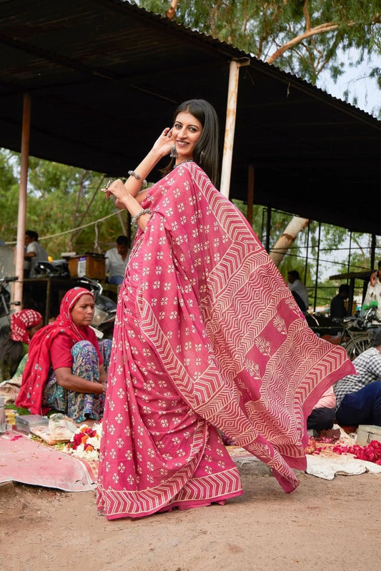 Mulmul Cotton Saree | Pink City Charm | Indian Blocks Print